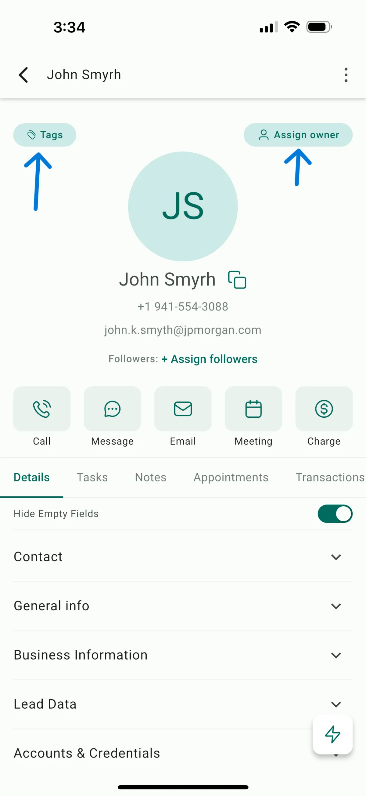 Step 4. Tap the Tags button to add the correct tag for the type of messaging that you wish to send to the contact.